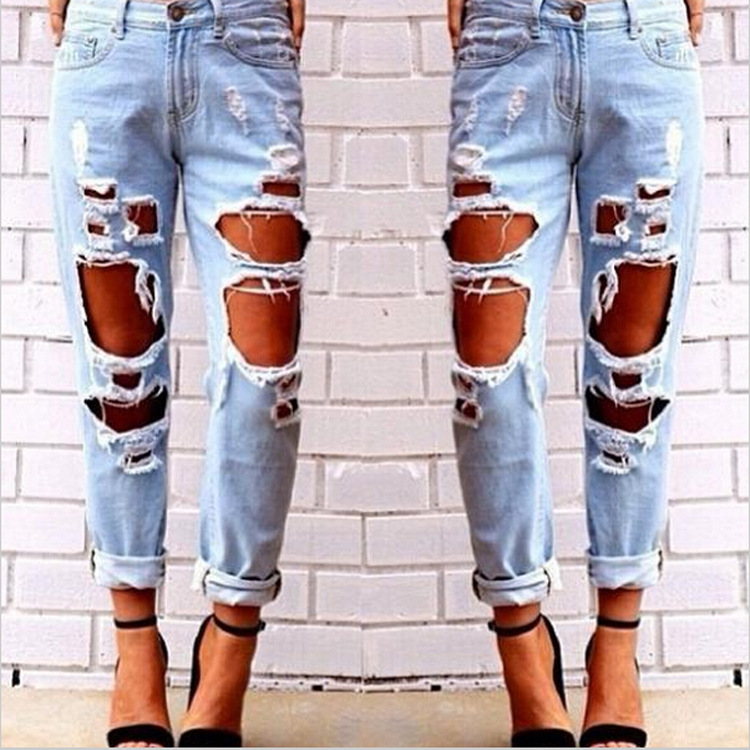 Aliexpress explosion Europe Code loose wild sexy big hole beggar exaggerated boyfriend jeans