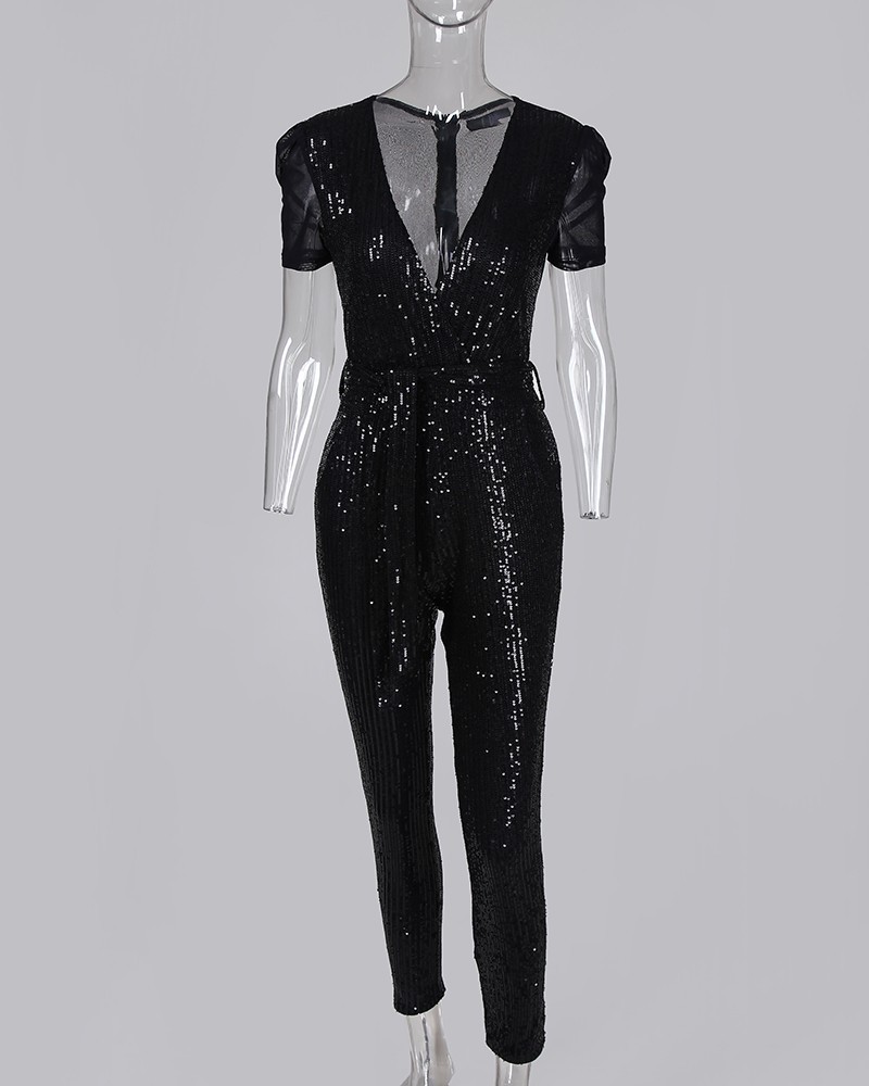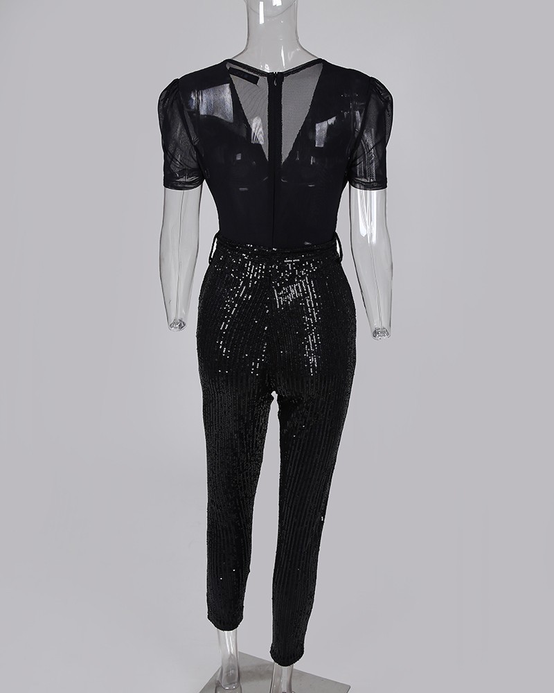Deep V sequined jumpsuit
