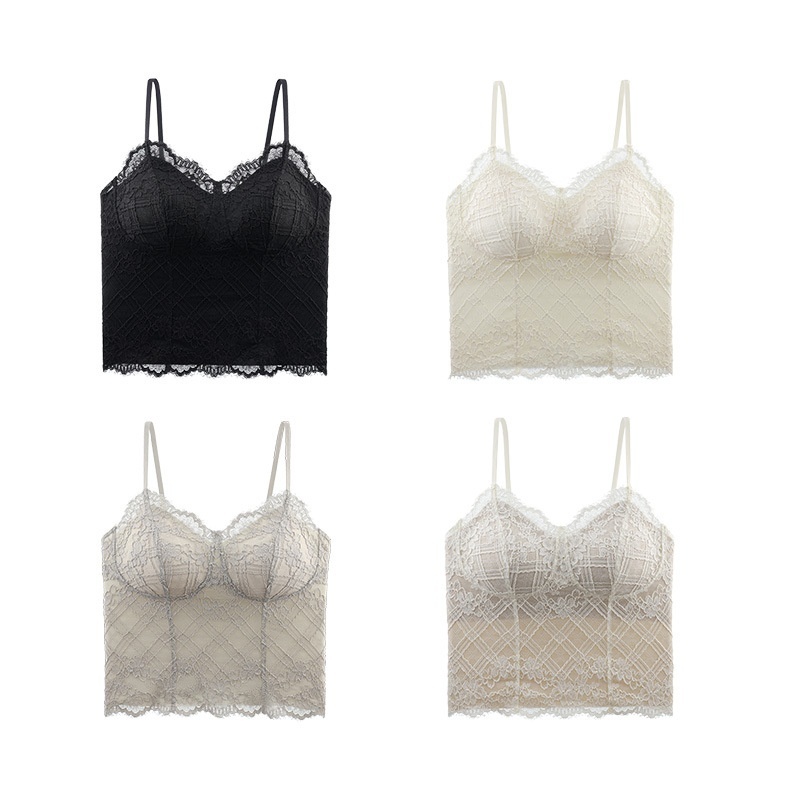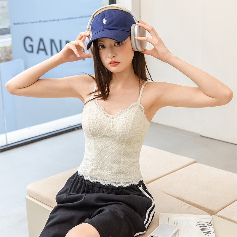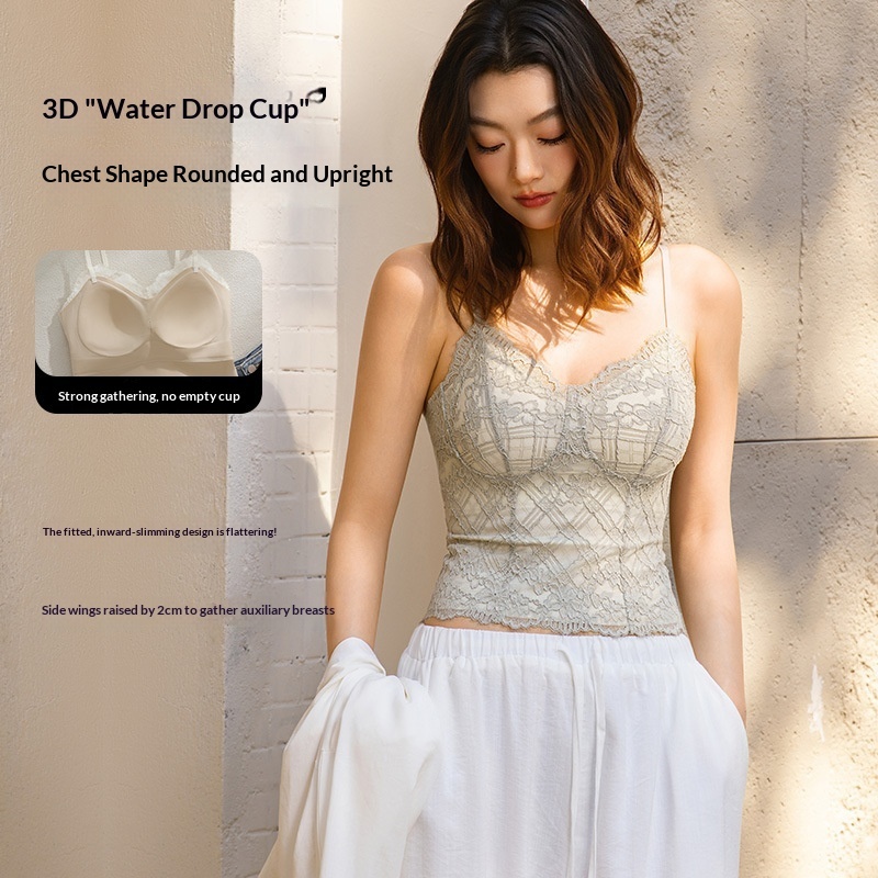 French-style Eyelash Lace Camisole For Women One-piece With Padded Cups