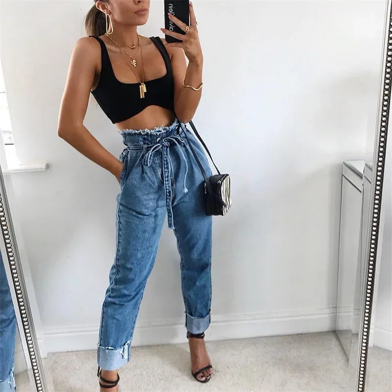 High-waisted Washed Pencil Pants Spring Sexy Temperament European And American Plus Size Denim Jeans For Women