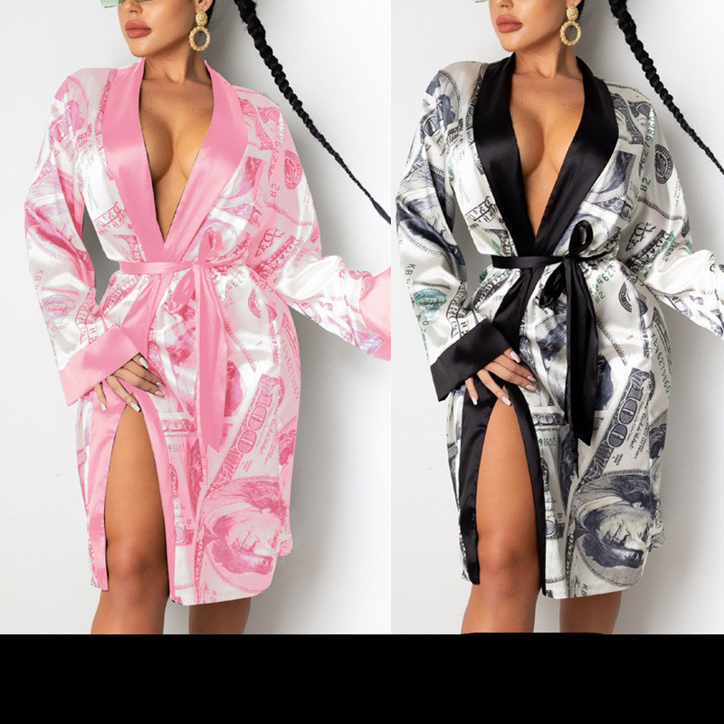 Hirigin Aesthetic Cardigan Long Sleeve Midi Bandage Dress Money Pajamas Fall Clothes For Women Fashion Sexy Lounge Wear