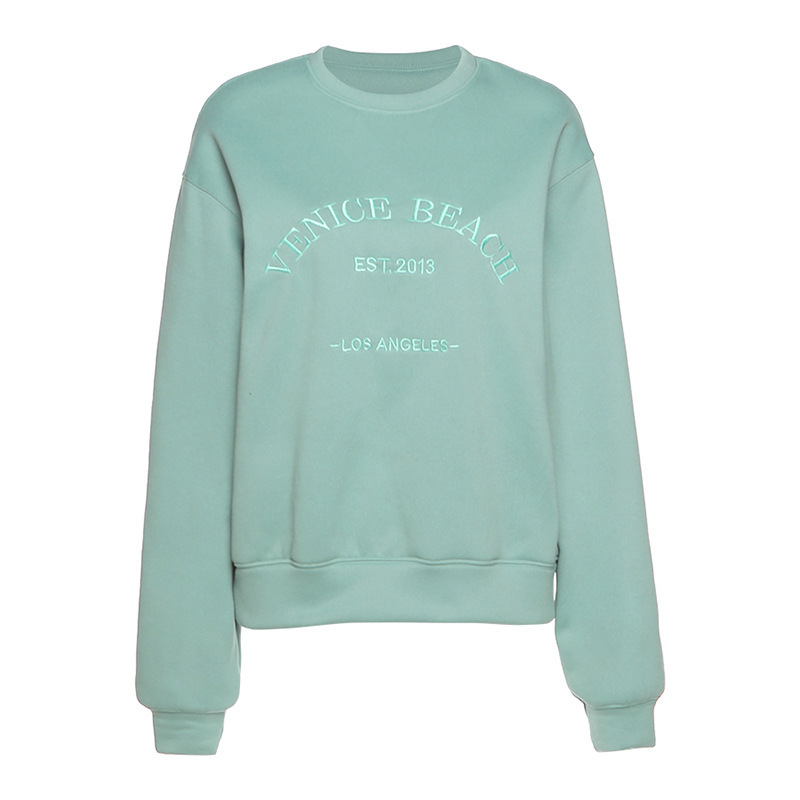 Letter Embroidered Fleece Thick Loose Loose All-Match Casual Sweater