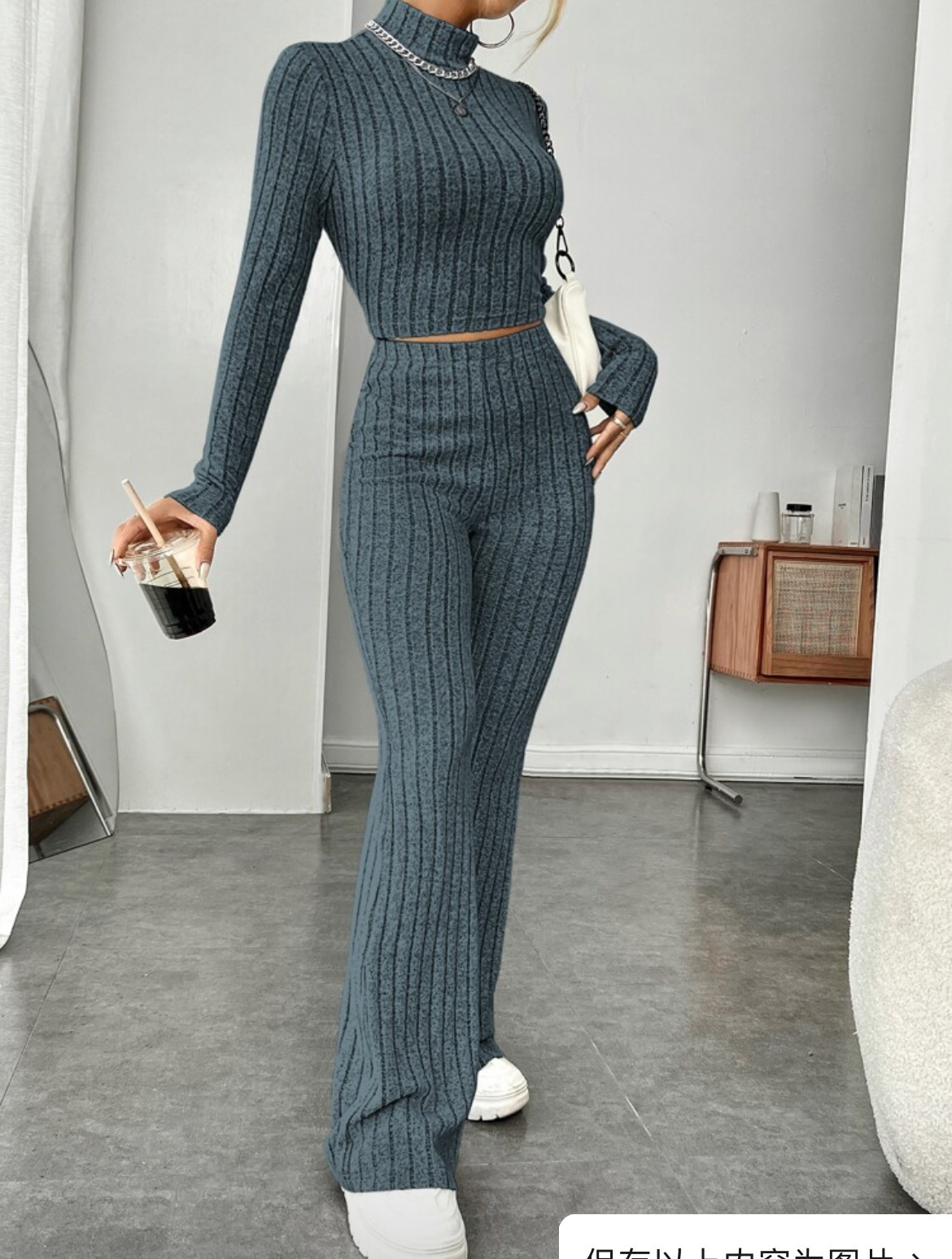 Be the first to review “Long Sleeve Turtlenecks Wide Leg High Waist Trousers Suit”