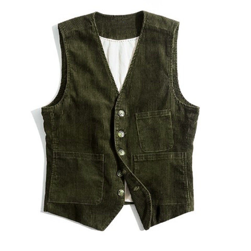 Mens Spring Autumn Corduroy Vest With Patchwork Design