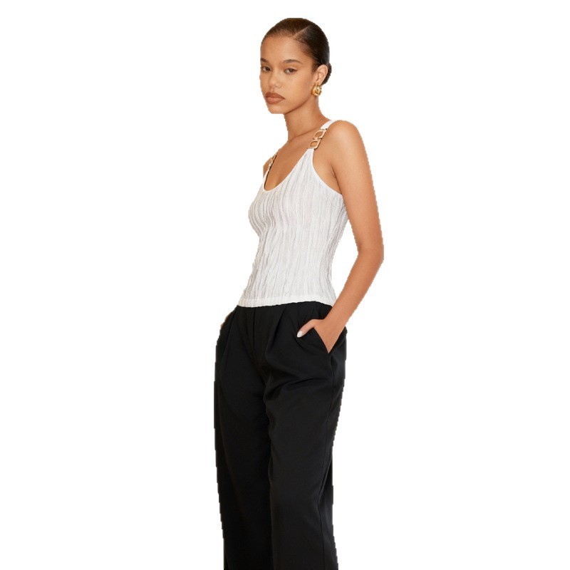 Metal Buckle-design Strappy Pleated Slim-fit Vest