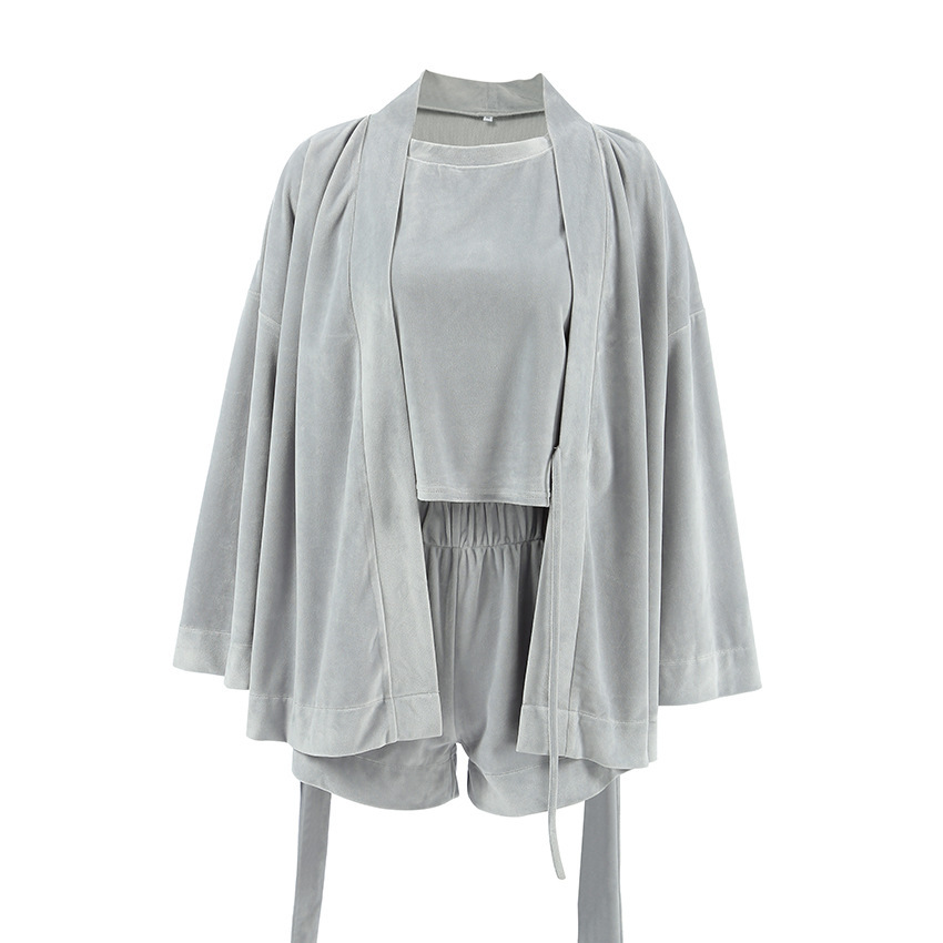 Short-sleeved Shorts Outerwear Gown Three-piece Pajamas For Women