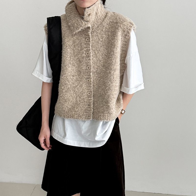 Simple Stand-Up Collar Womens Layered Relaxed Vest