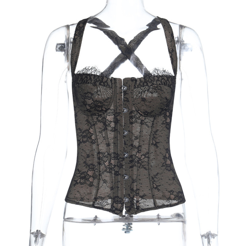 Wind Lace Sexy Corset Bustier Top All-Match Slim-Fit Tank Top For Women
