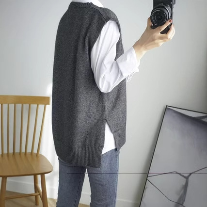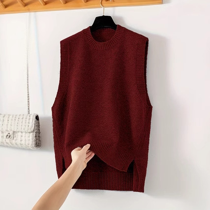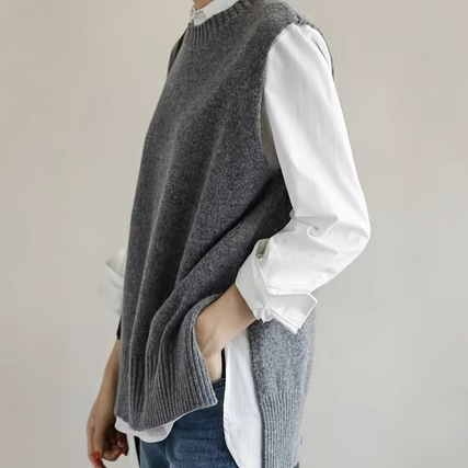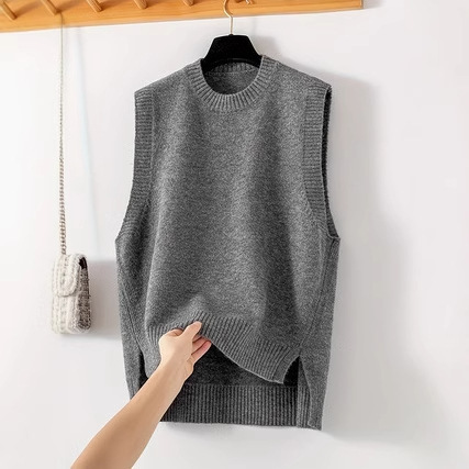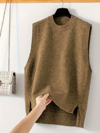Women’s Crew-Neck Loose Sleeveless Knitted Vest Top