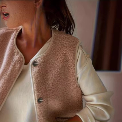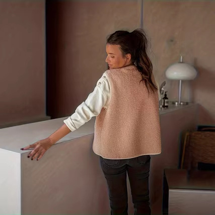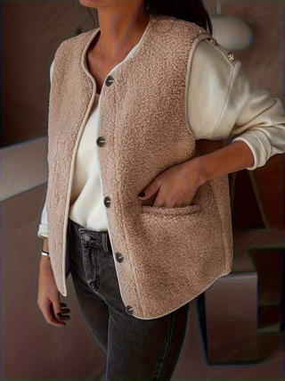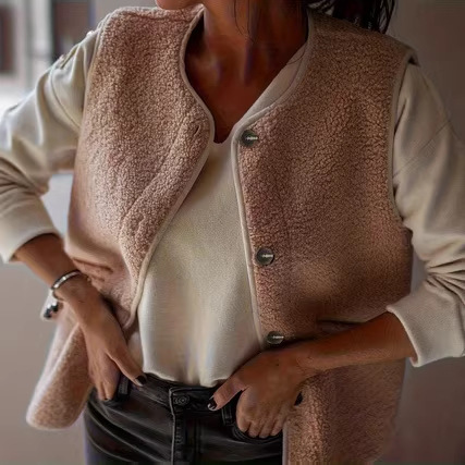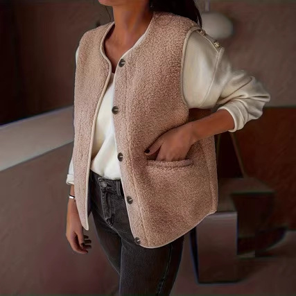 Womens Front-button Closure And Pocket Details Casual Blazer Vest