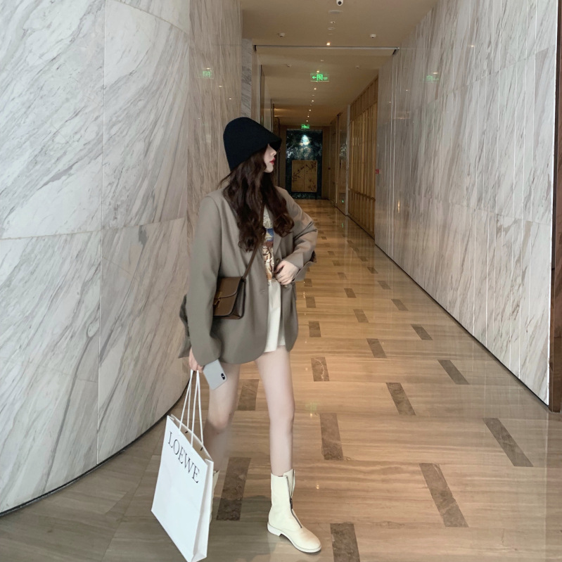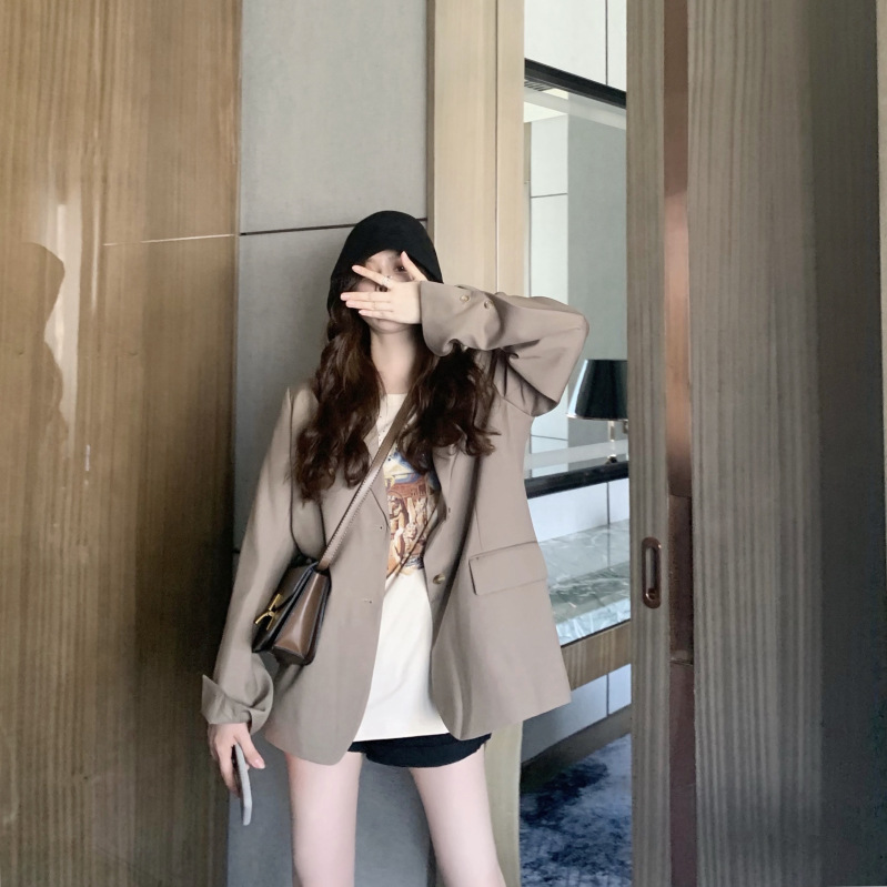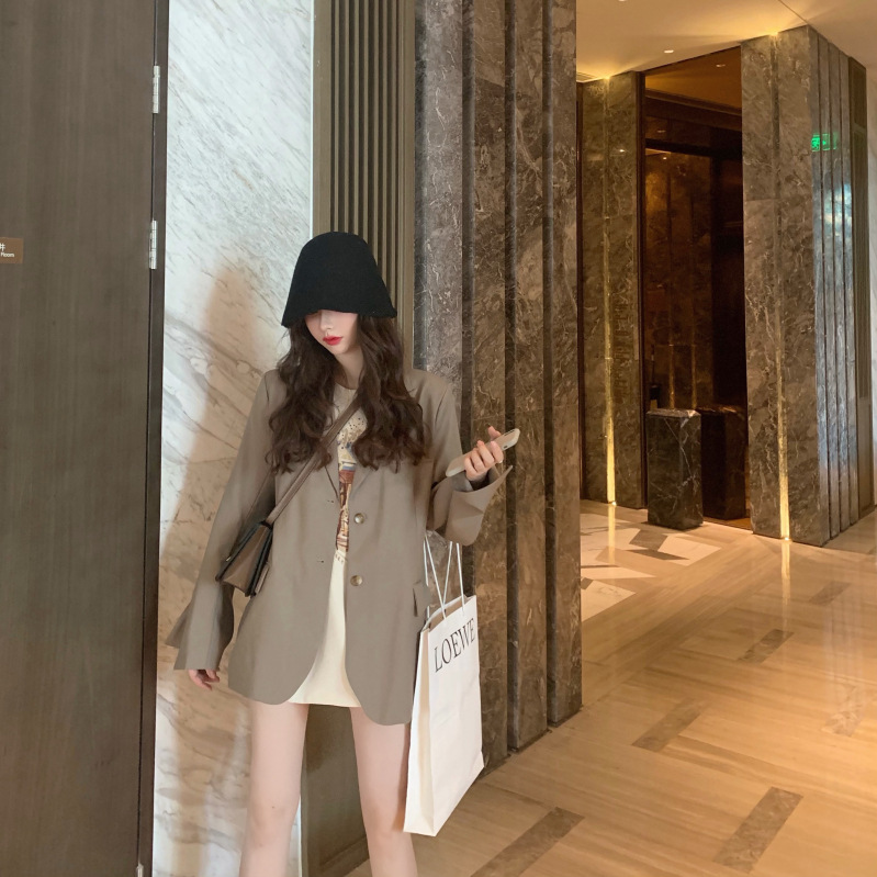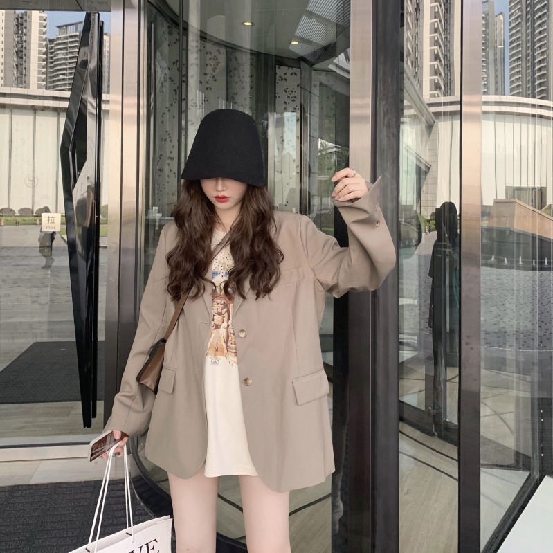 Color: Khaki suit, fruit green suit, beige short-sleeved T-shirt