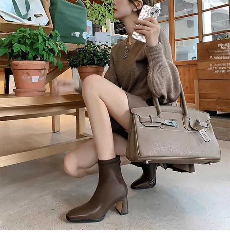 Small French Coarse Heel Ankle Boots