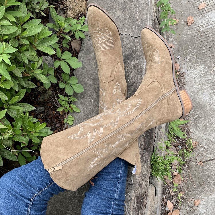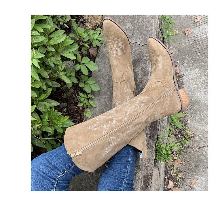 Vintage Embroidered V-Mouth Martin Boots