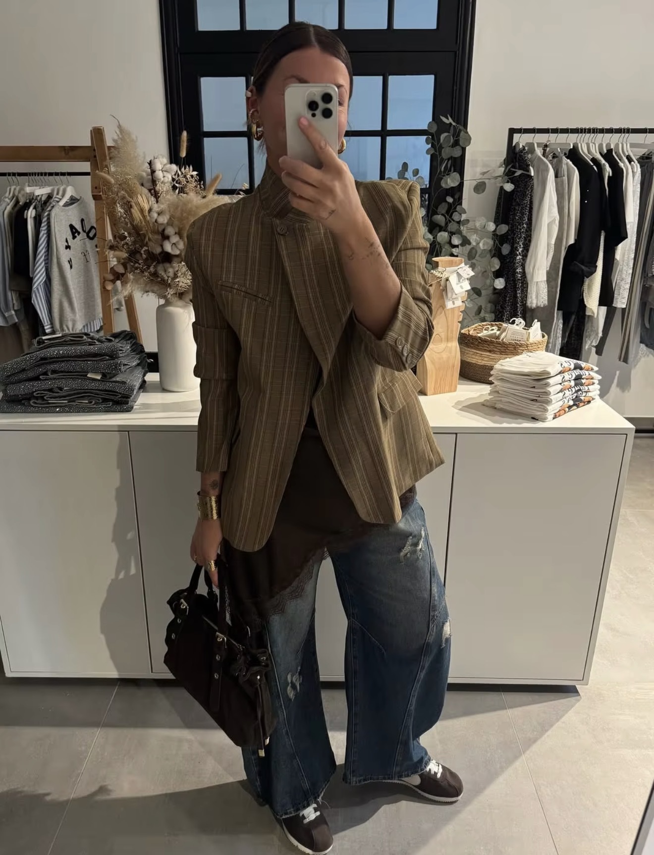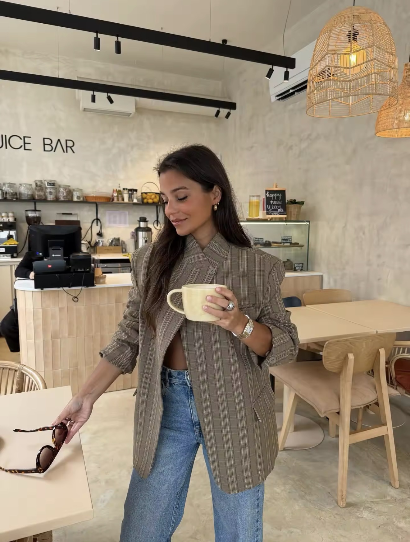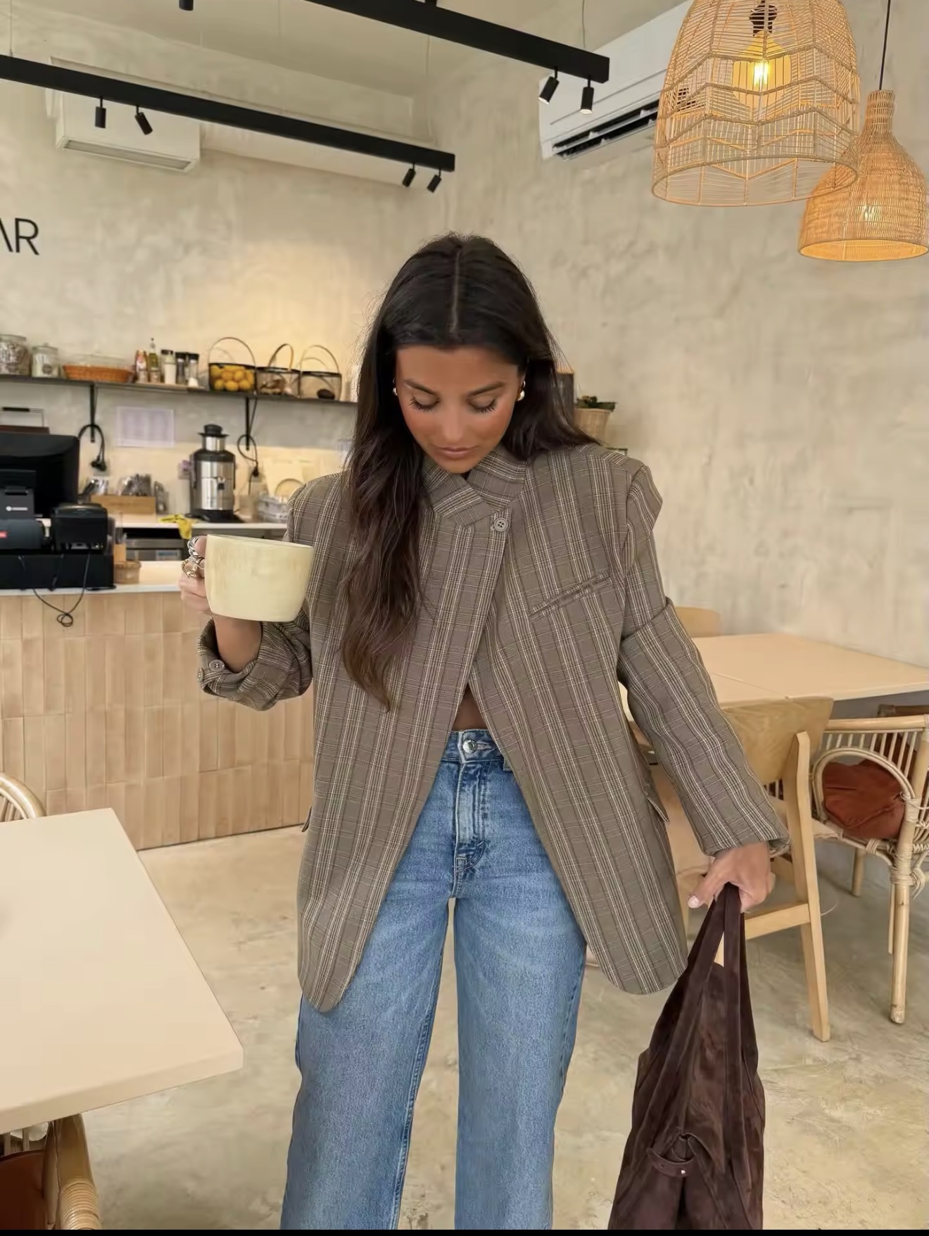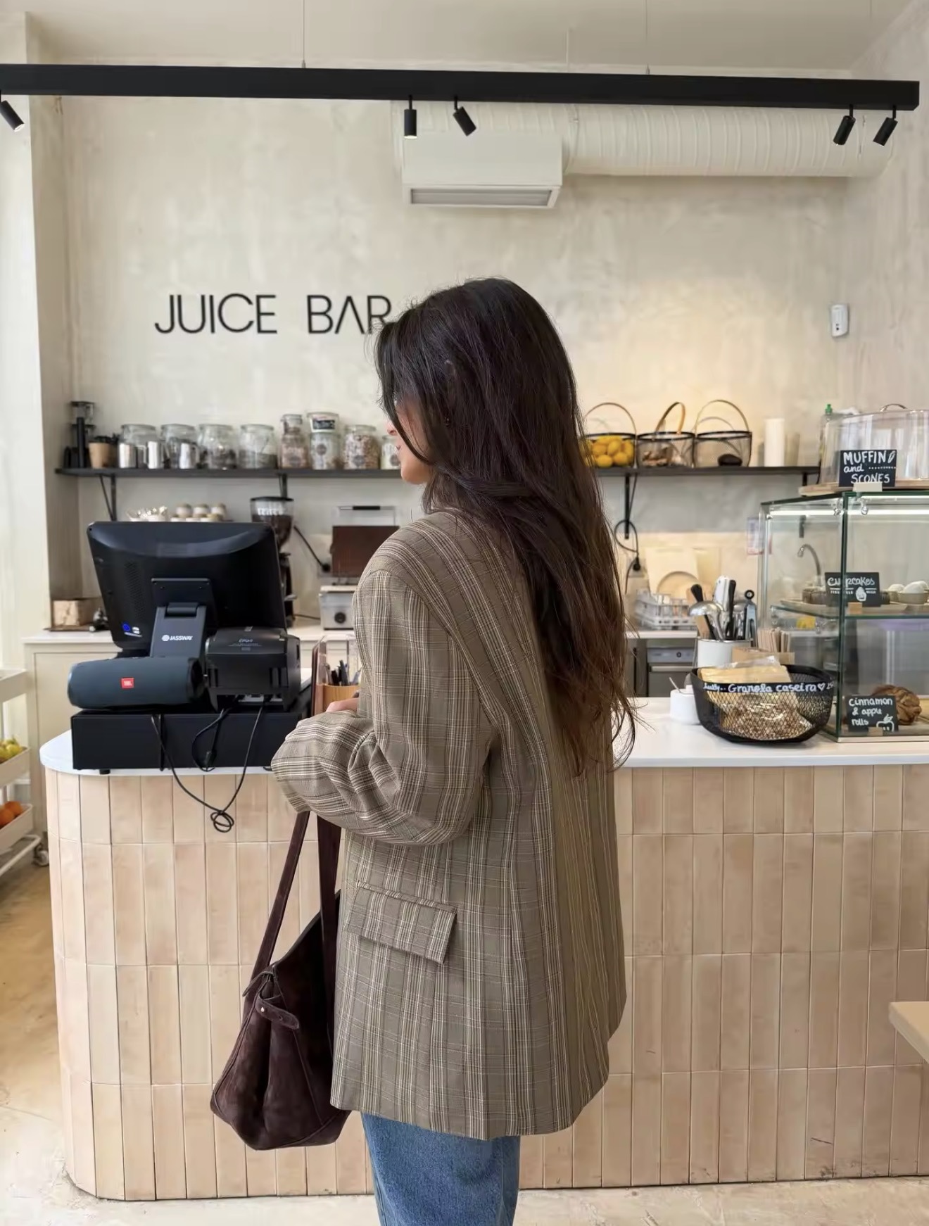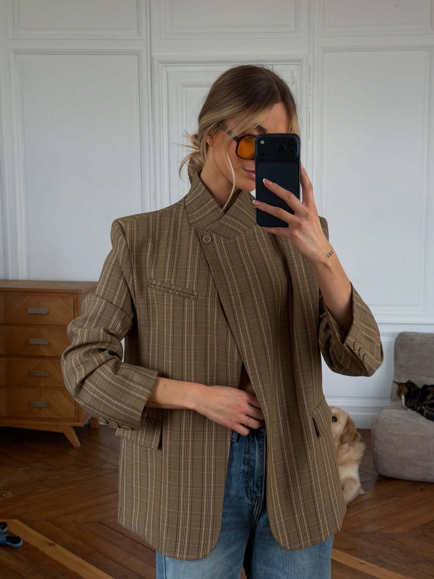 Colors: Black, dark gray, khaki plaid, camel plaid