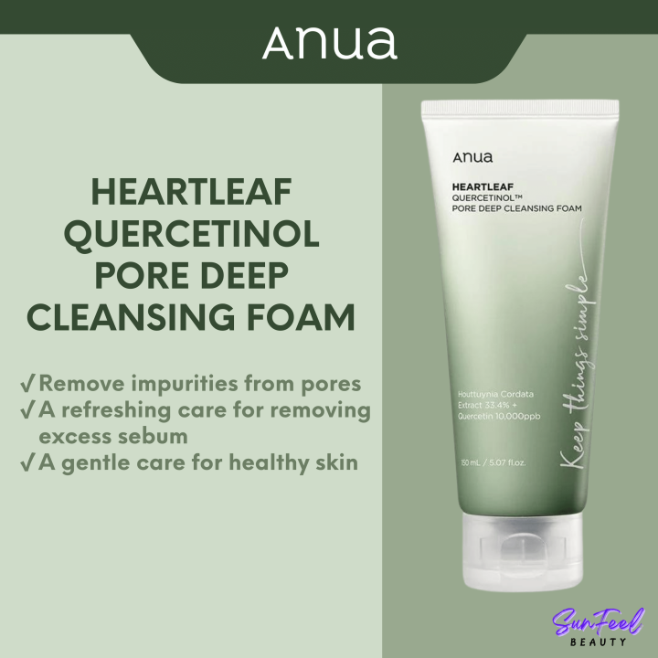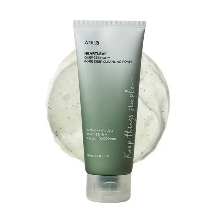 يتميز Anua Heartleaf Quercetinol™ Pore Deep Cleansing Foam بتركيبة غنية بـخلاصة الهوثونيا بنسبة 33.4% والكيرسيتين بتركيز 10,000ppb، مما يساعد في تنظيف المسام بعمق وتنقية البشرة | Formulated with 33.4% Houttuynia Cordata Extract & 10,000ppb Quercetin, deeply cleanses pores and purifies skin.