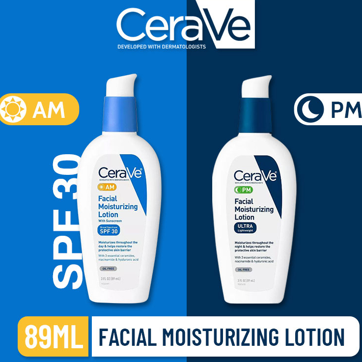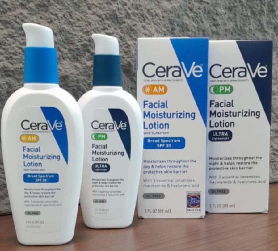 🌞 CeraVe AM Facial Moisturizing Lotion – يحتوي على واقي شمس SPF 30 لحماية البشرة من الأشعة الضارة، مع السيراميدات، النياسيناميد، وحمض الهيالورونيك لترطيب البشرة واستعادة حاجز الحماية الطبيعي.