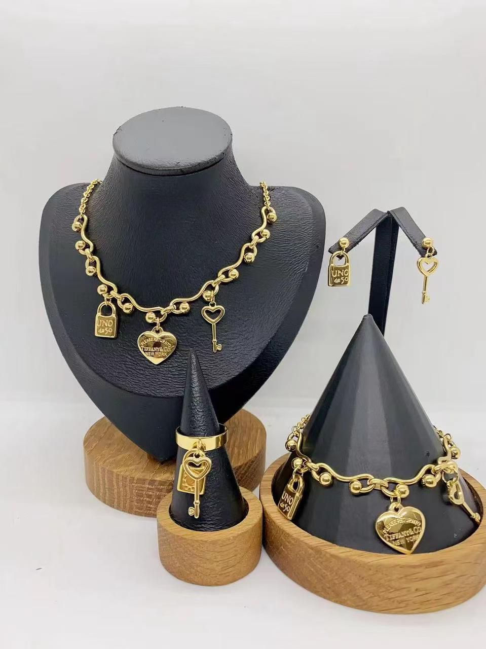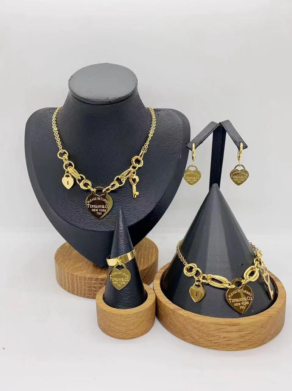 - يشمل: قلادة 💗، حلق ♥️، خاتم 💍، وأسورة 💝 بتصميم عصري