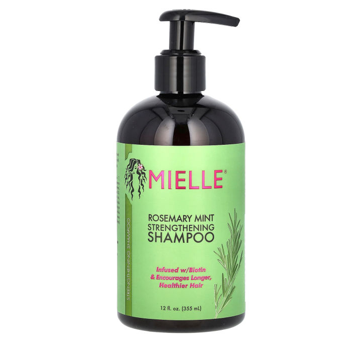 يتميز Mielle Rosemary Mint Strengthening Shampoo بتركيبة مغذية تحتوي على البيوتين لتعزيز قوة الشعر وتشجيع نموه الصحي | Nourishing formula enriched with biotin to strengthen hair & promote healthy growth.