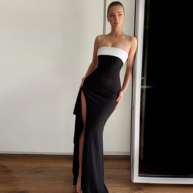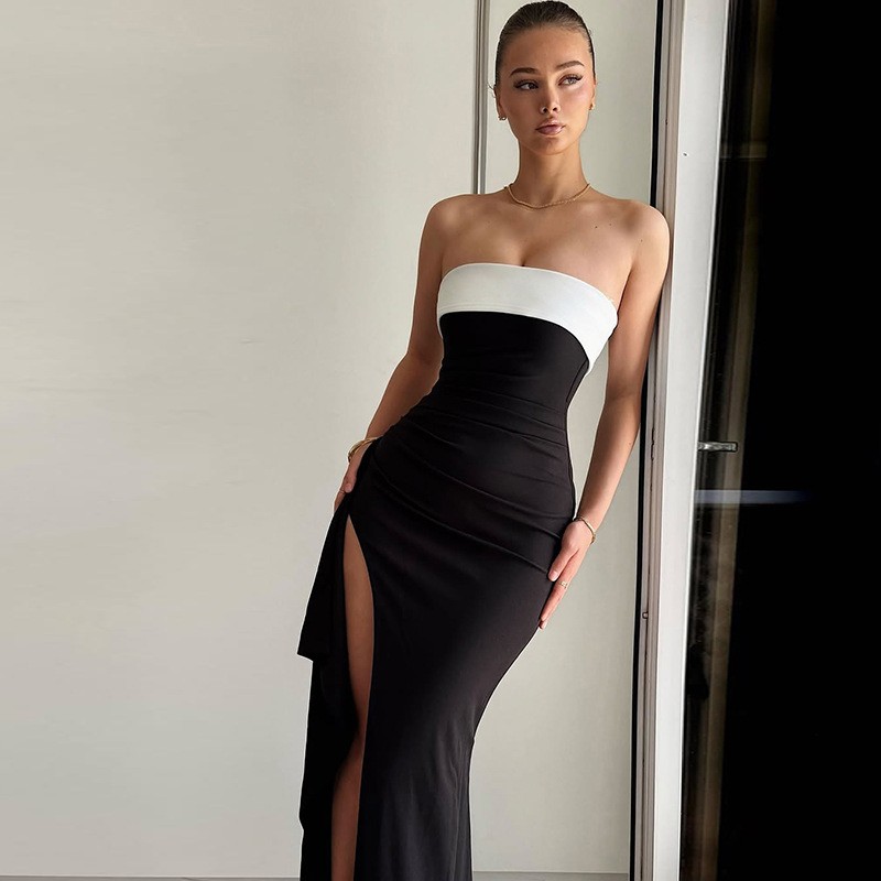 Contrast Off-shoulder Strapless Skirt