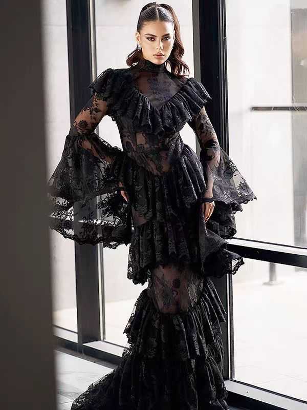 Embroidered Ruffled Maxi Dress