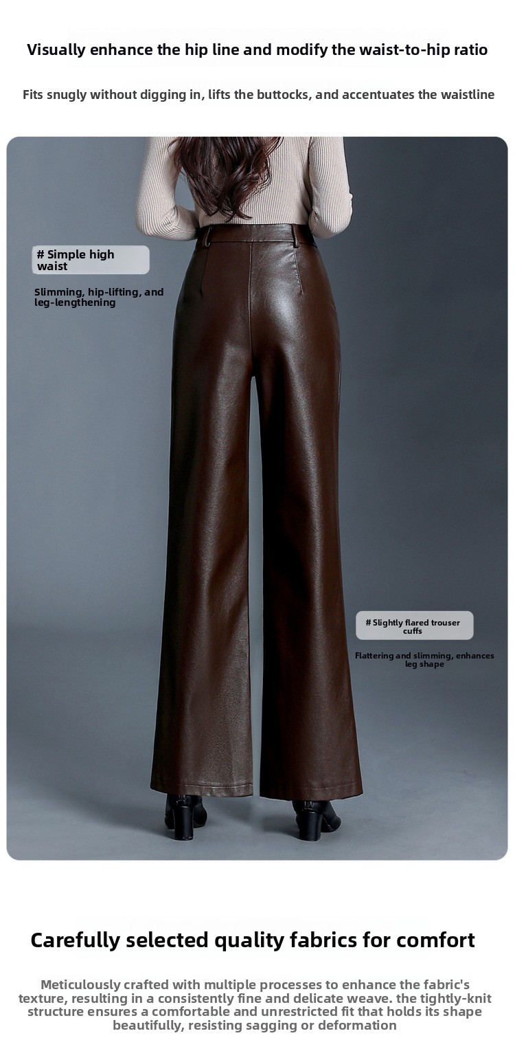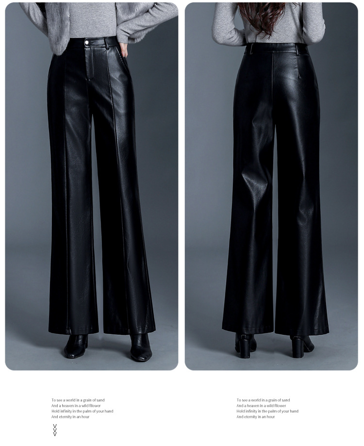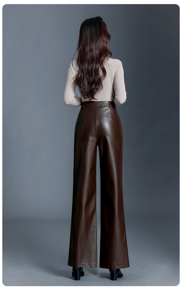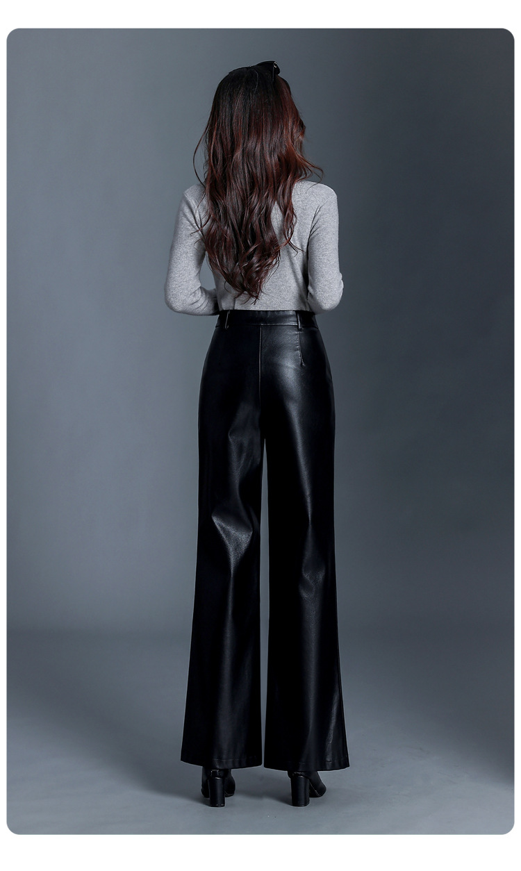 Fashion Simple Wide Leg Leather Pants