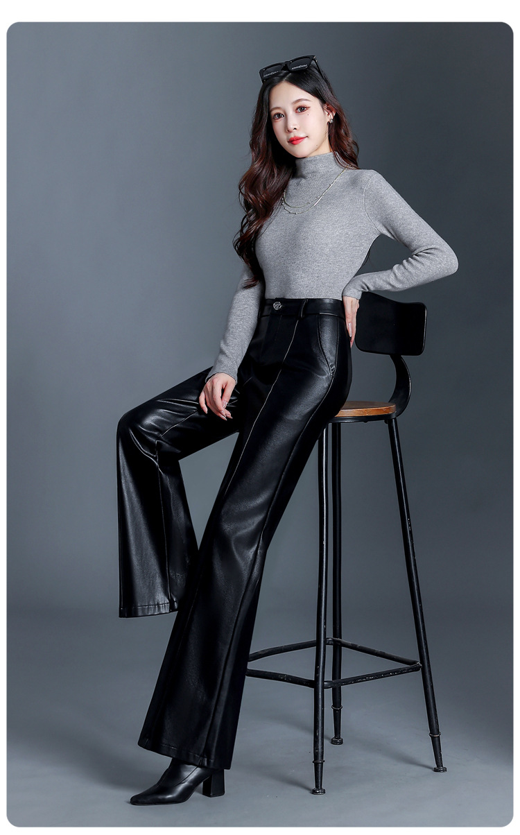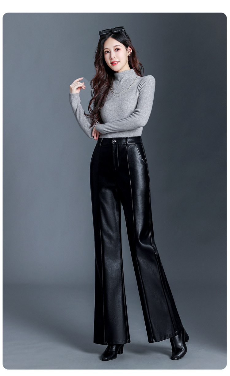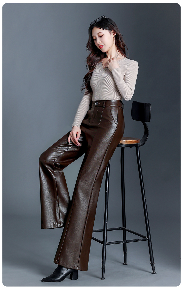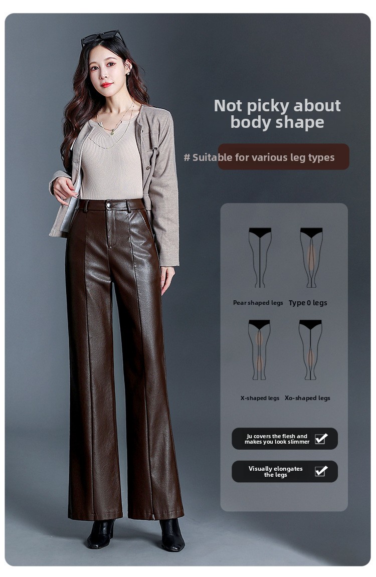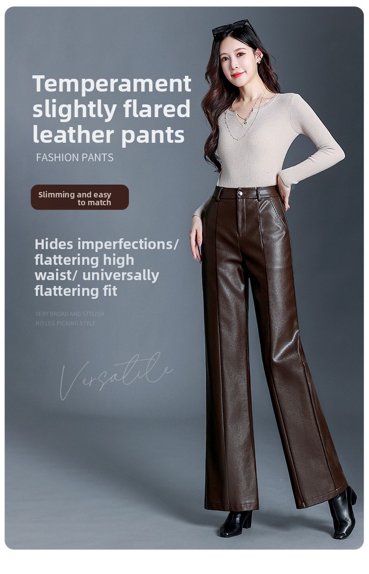 Fashion Simple Wide Leg Leather Pants