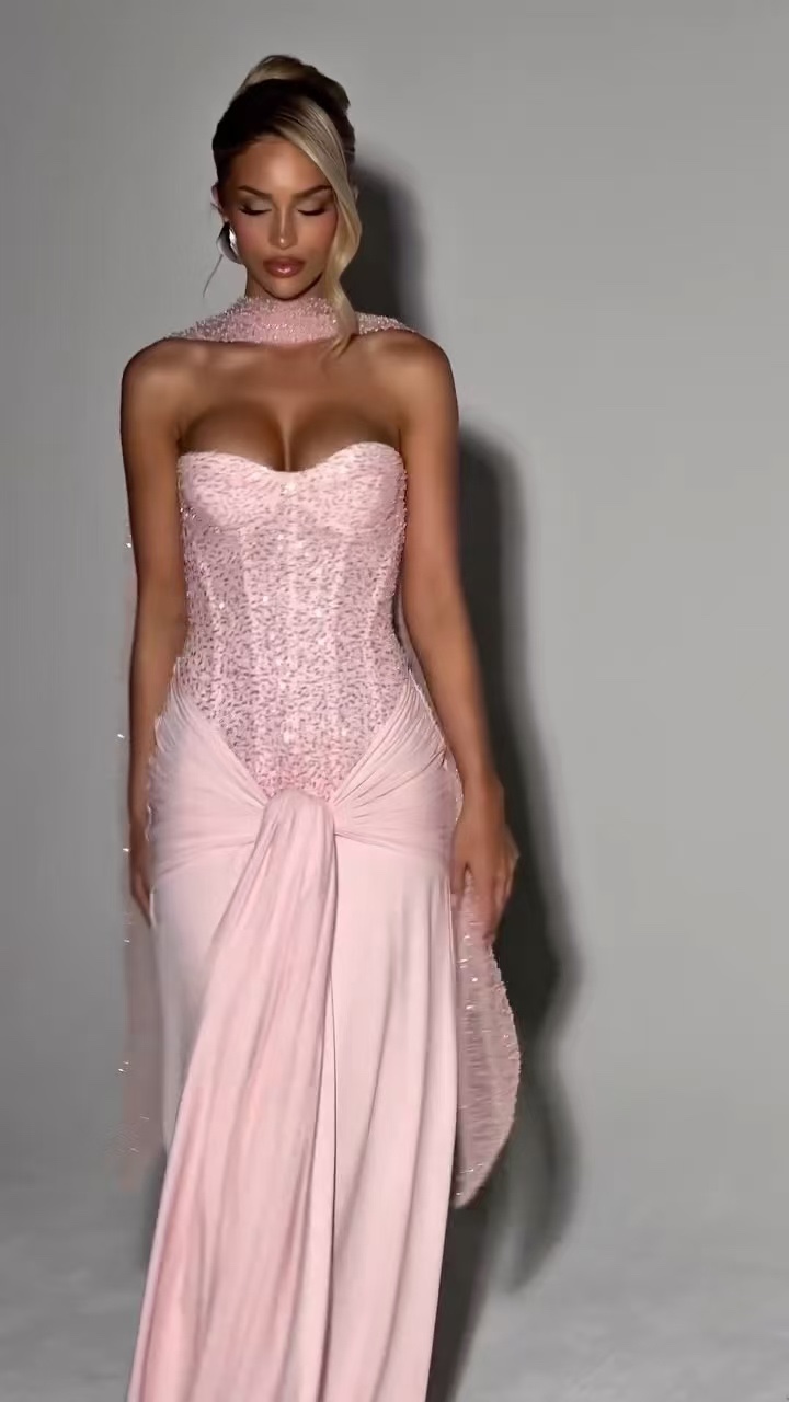 One Pink Strapless Evening Gown