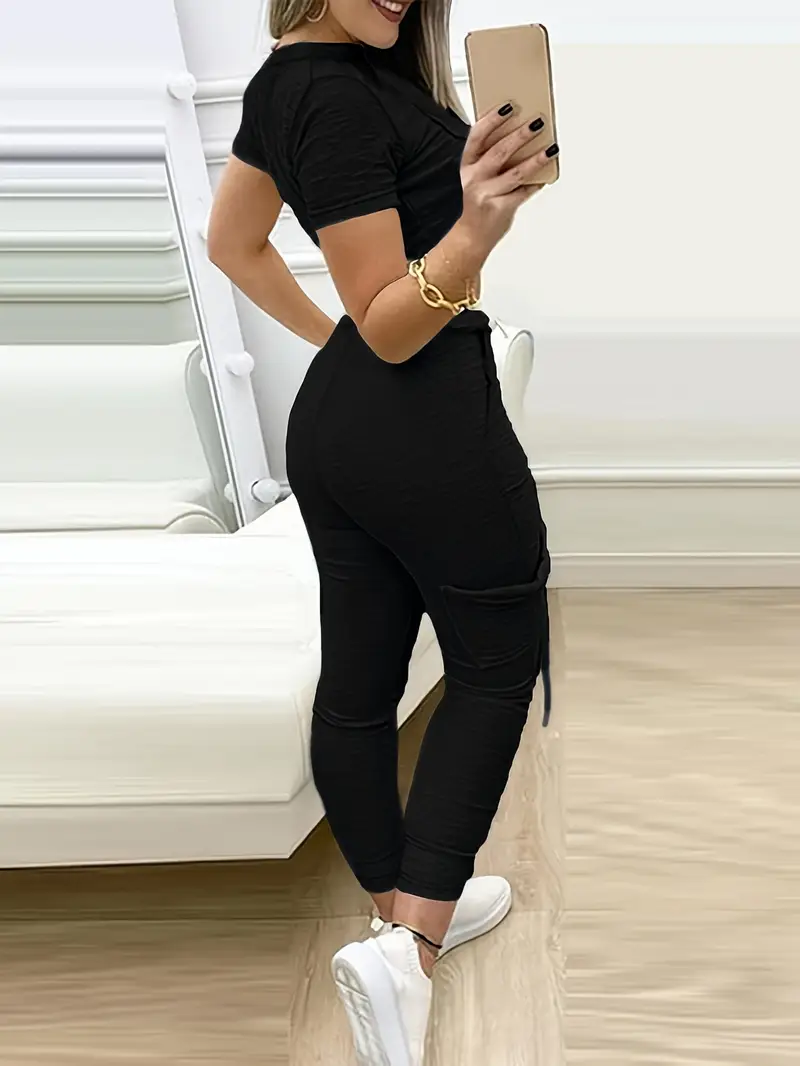 طقم توب وبنطلون ضيق بلون سادة