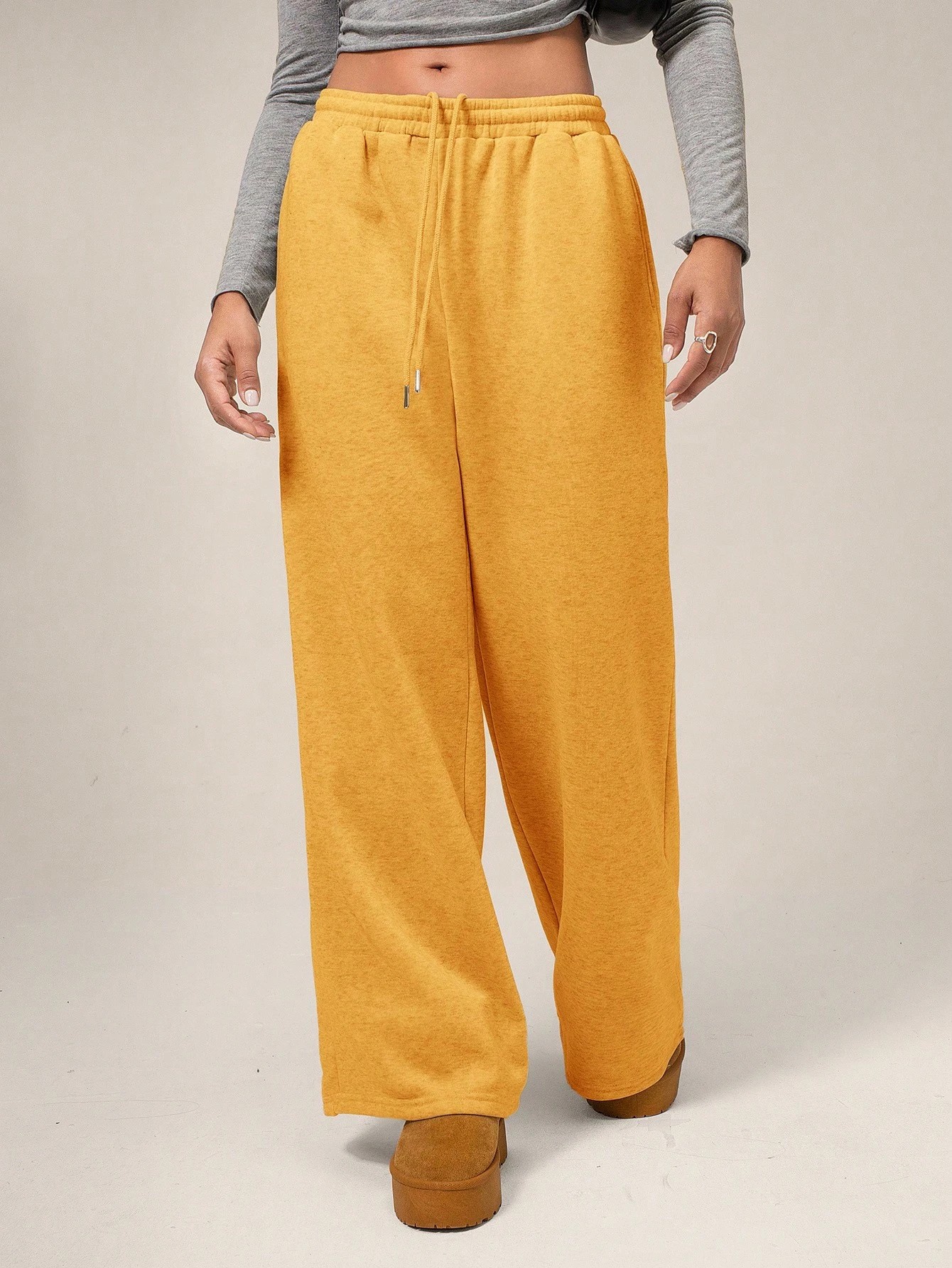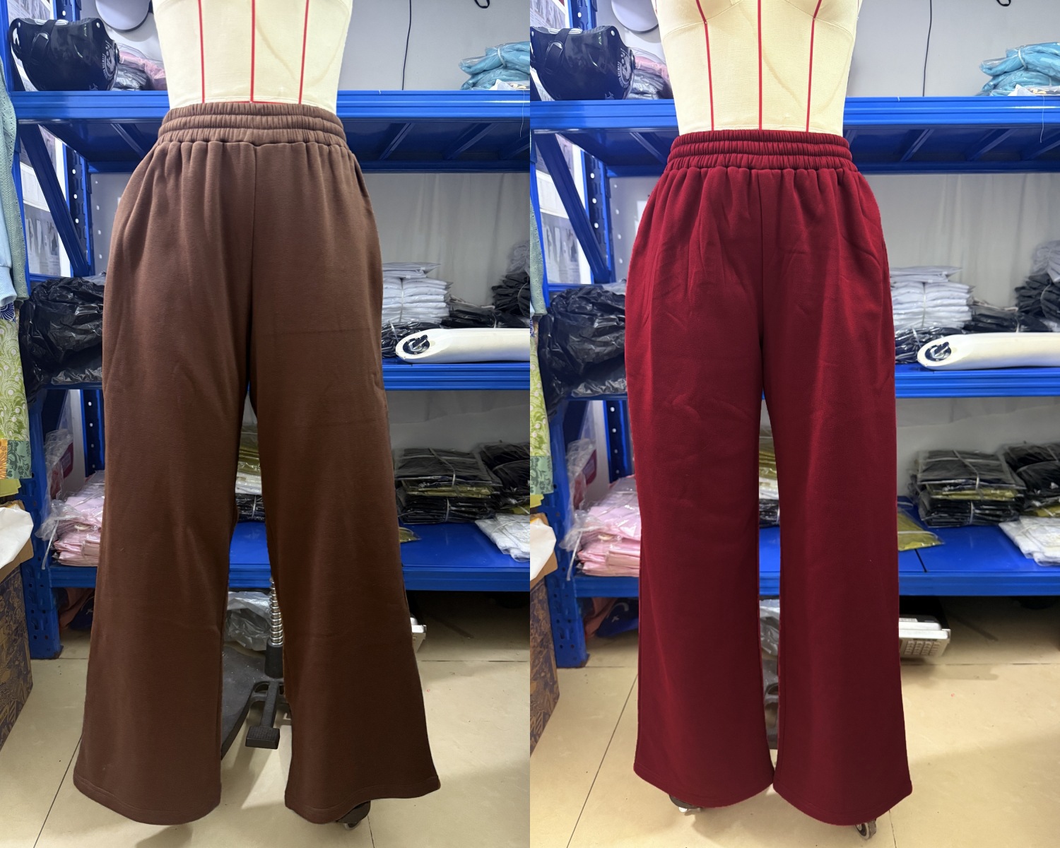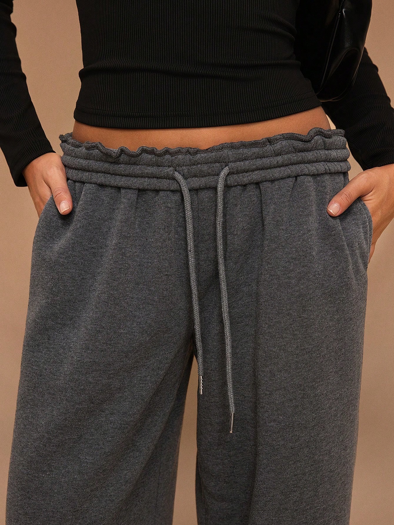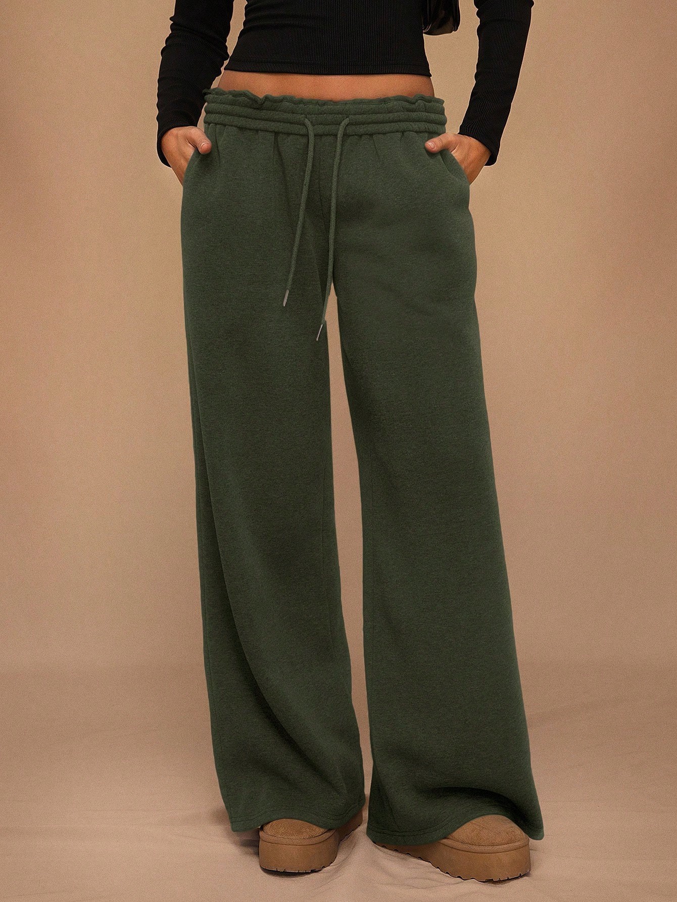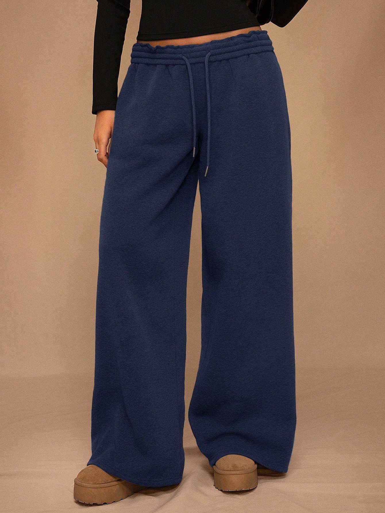 Rubber Fleece-Lined Loose Trousers