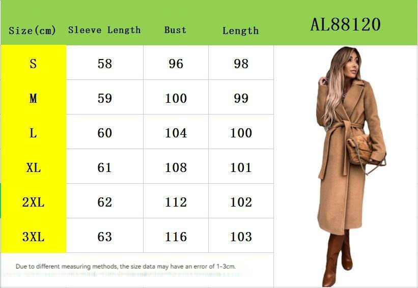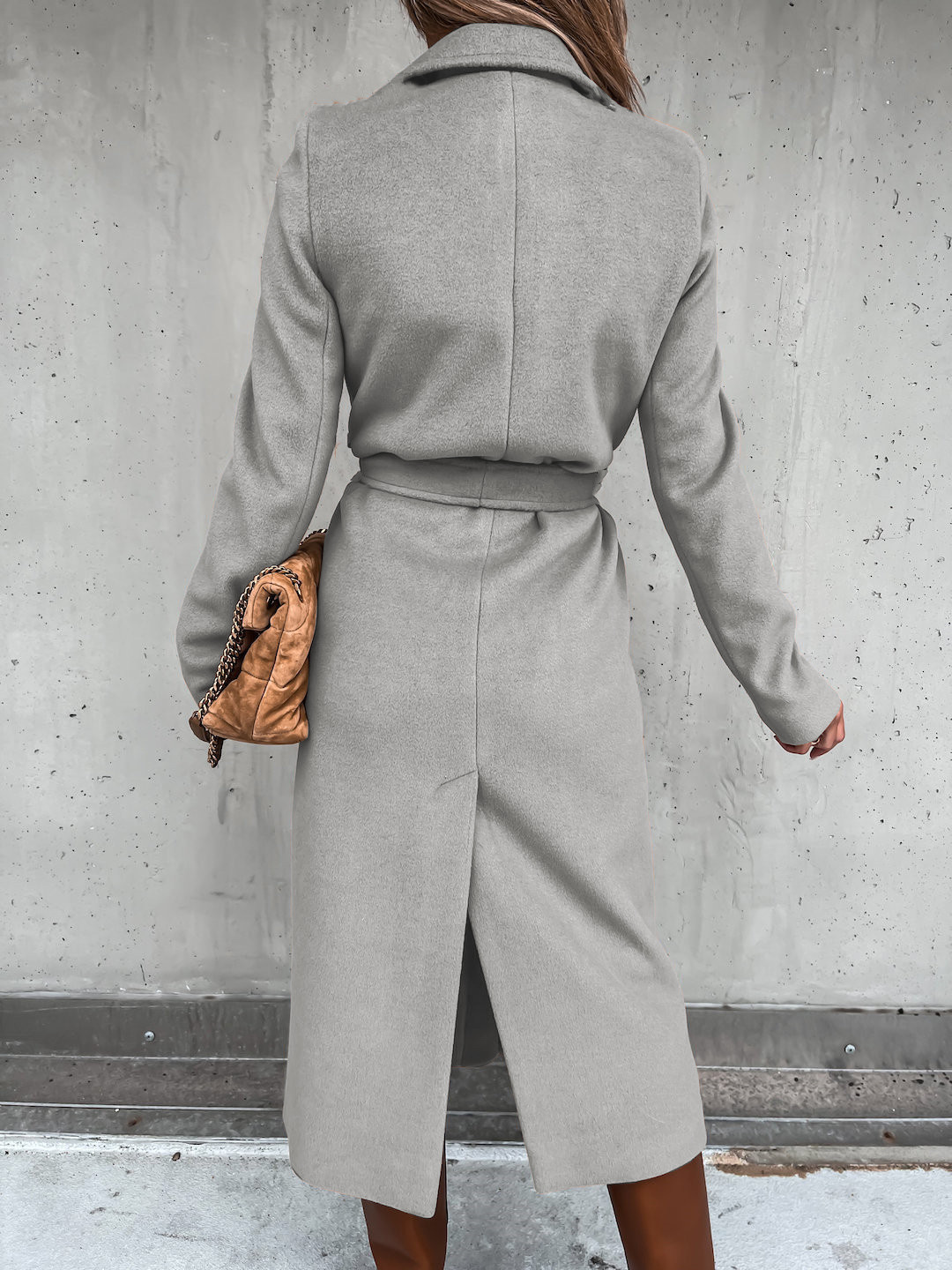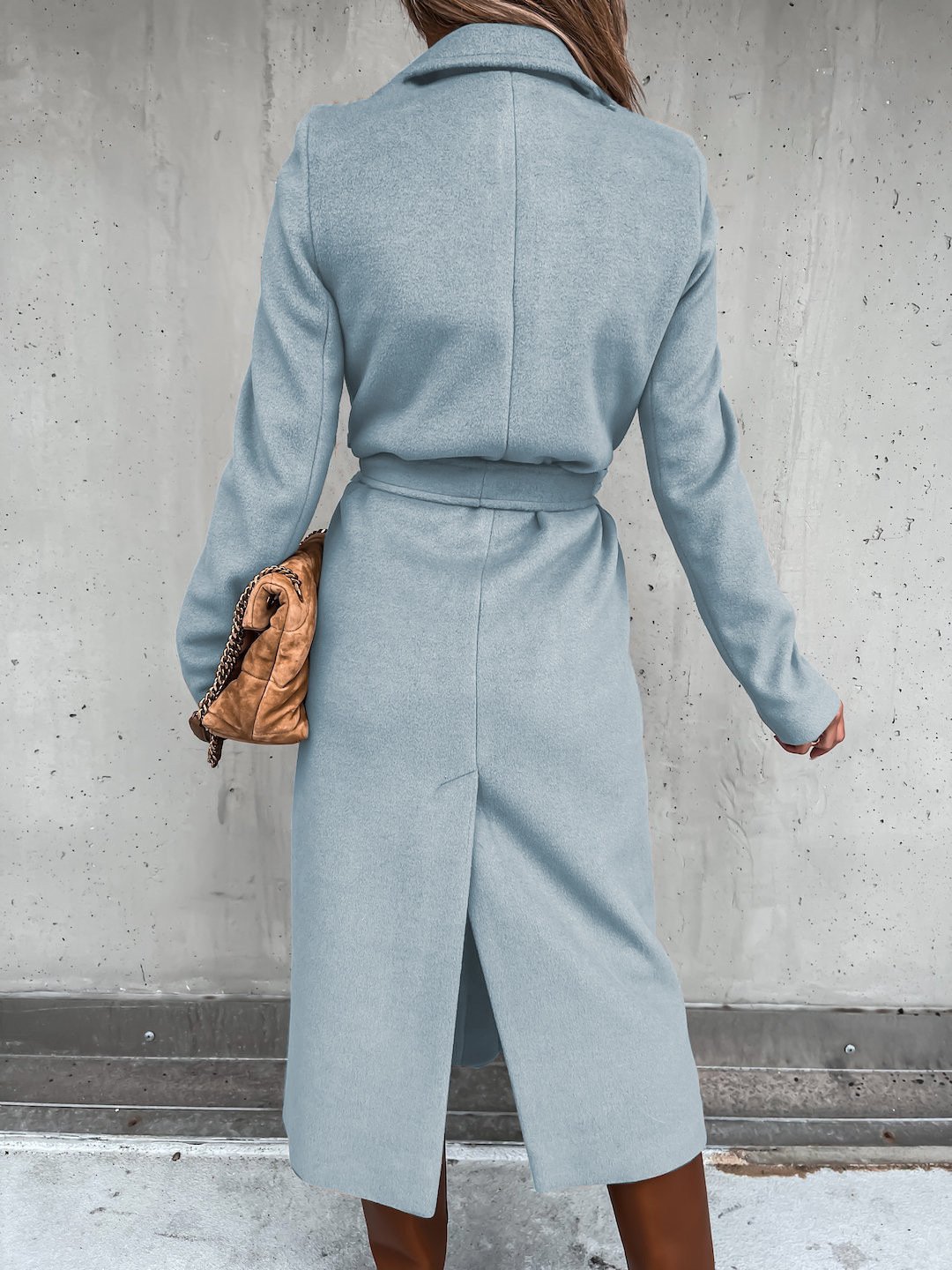 Solid Color Lapel Long Sleeved Woolen Jacket