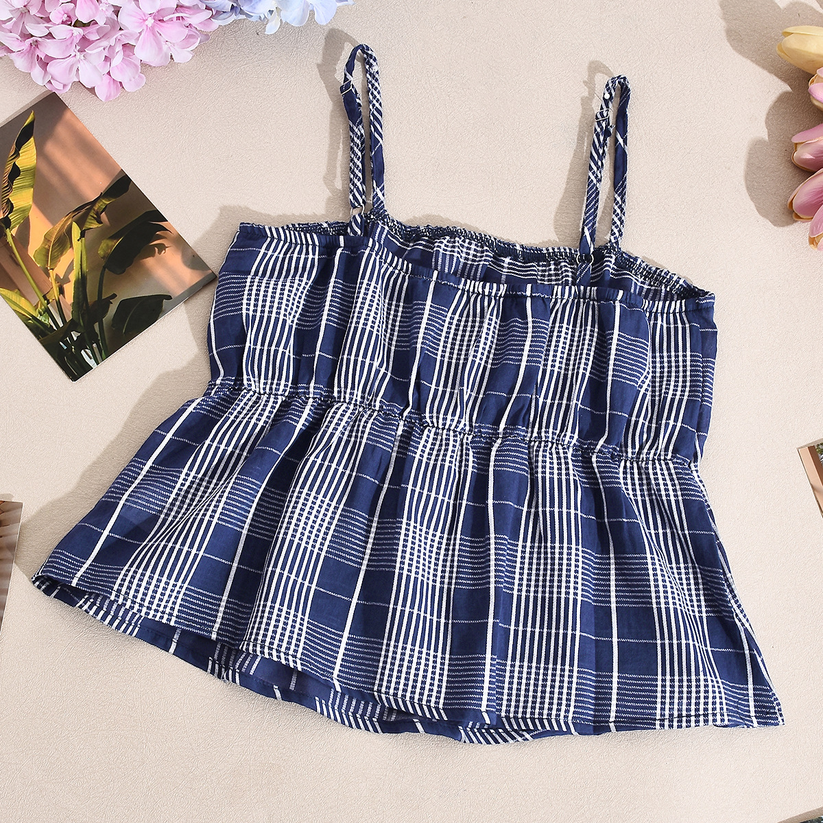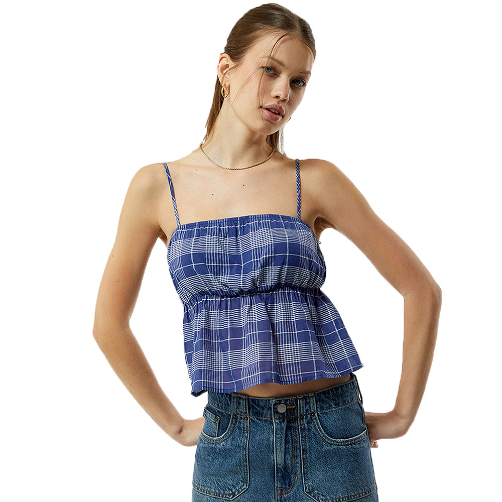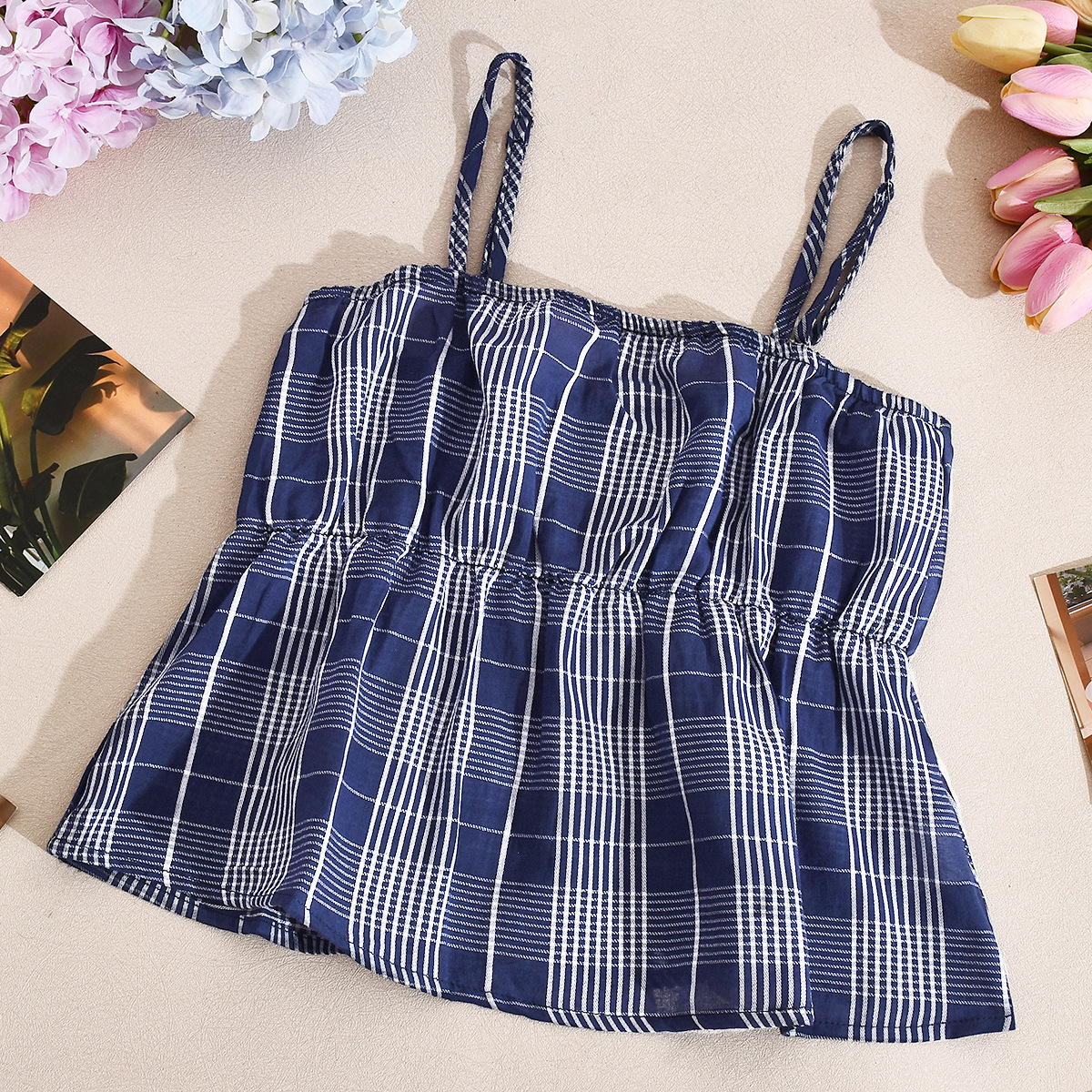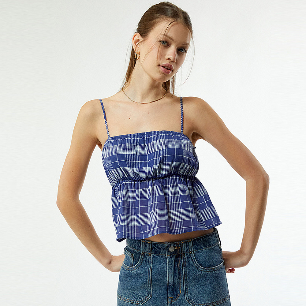 Trendy Elements: Color-block plaid, elastic waistband