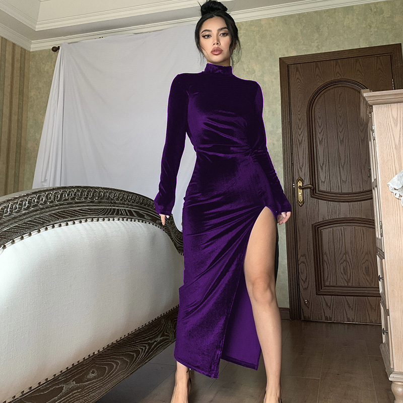 Turtleneck Velvet Gown