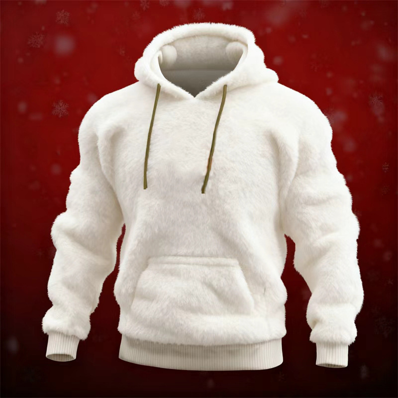 Velvet Solid Color Hooded Patch Bag Sweatshirt